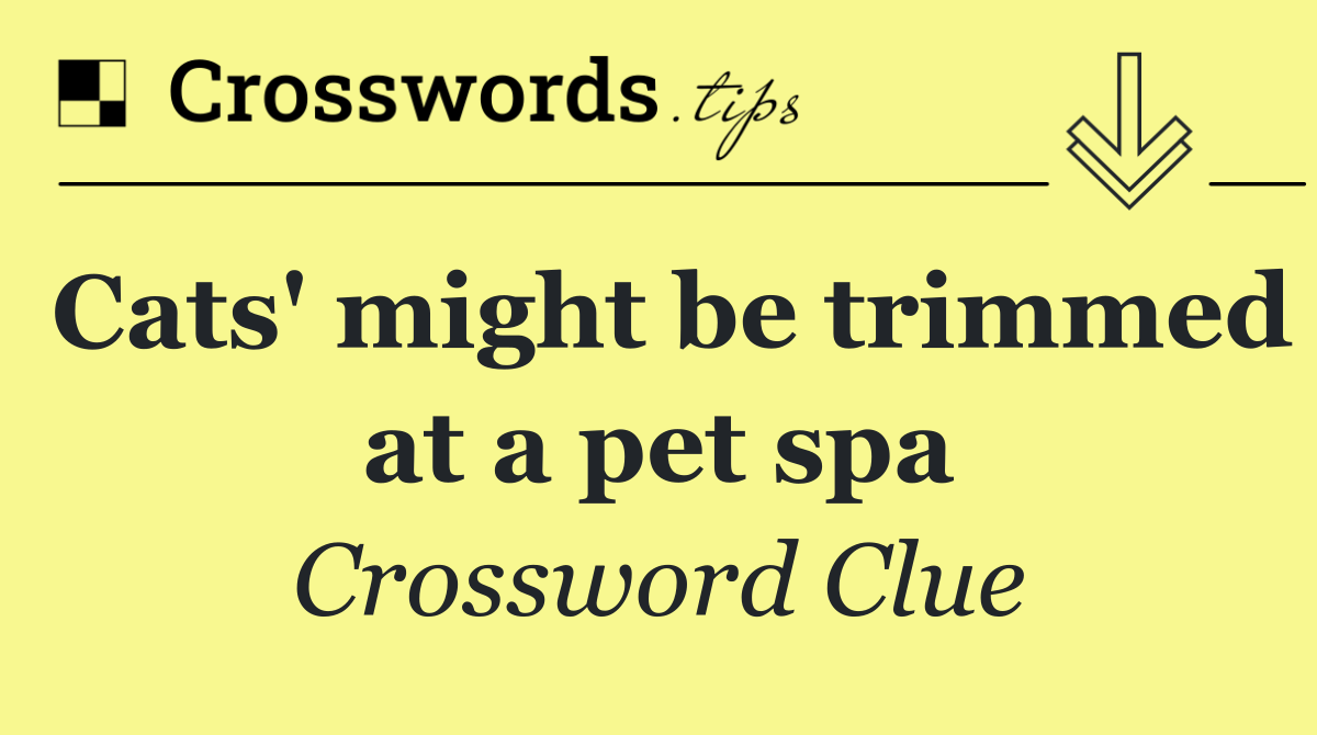 We specialize in solving many of your favorite puzzles, including the New York Times, USA Today, LA Times, Daily Themed Crosswords, and more. The "Cats' might be trimmed at a pet spa" clue from the USA Today puzzle, July 18 edition, is one such example.