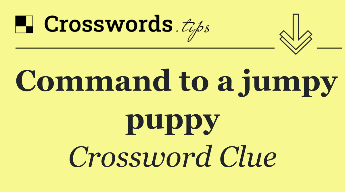 Looking for the answer to Command to a jumpy puppy from the USA Today puzzle? We have found the exact 3-letter solution you need. Want a challenge? Use our progressive letter reveal tool, explore helpful hints like anagrams and alternative clues, or browse other clues from today's puzzle. Ready to solve it?