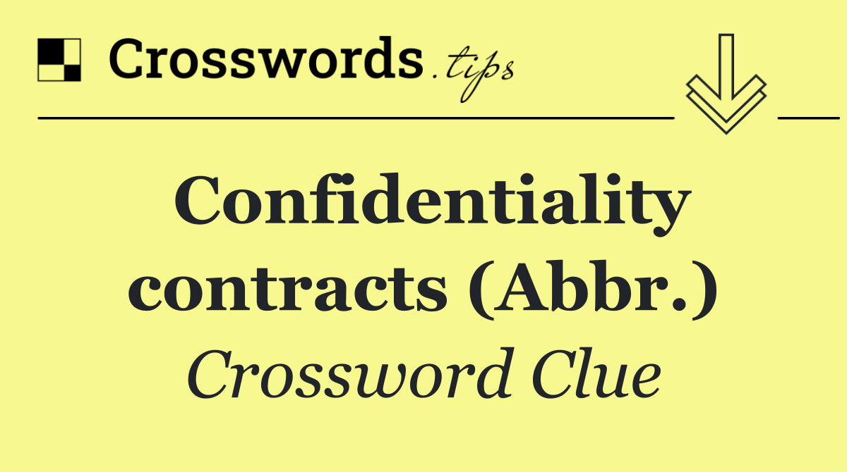 Looking for the answer to Confidentiality contracts (Abbr.) from the USA Today puzzle? We have found the exact 4-letter solution you need. Want a challenge? Use our progressive letter reveal tool, explore helpful hints like anagrams and alternative clues, or browse other clues from today's puzzle. Ready to solve it?