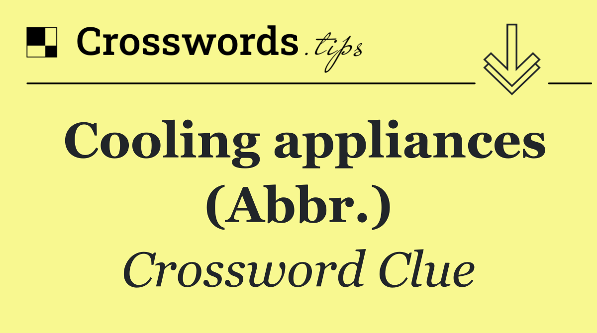 Looking for the answer to Cooling appliances (Abbr.) from the USA Today puzzle? We have found the exact 3-letter solution you need. Want a challenge? Use our progressive letter reveal tool, explore helpful hints like anagrams and alternative clues, or browse other clues from today's puzzle. Ready to solve it?