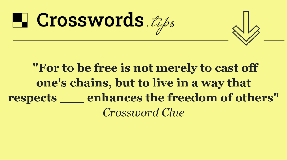 We specialize in solving many of your favorite puzzles, including the New York Times, USA Today, LA Times, Daily Themed Crosswords, and more. The ""For to be free is not merely to cast off one's chains, but to live in a way that respects ___ enhances the freedom of others"" clue from the USA Today puzzle, July 04 edition, is one such example.