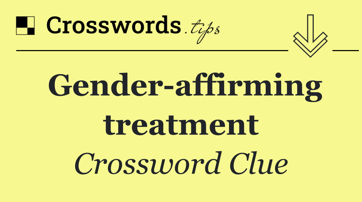 Looking for the answer to Gender affirming treatment from the USA Today puzzle? We have found the exact 3-letter solution you need. Want a challenge? Use our progressive letter reveal tool, explore helpful hints like anagrams and alternative clues, or browse other clues from today's puzzle. Ready to solve it?