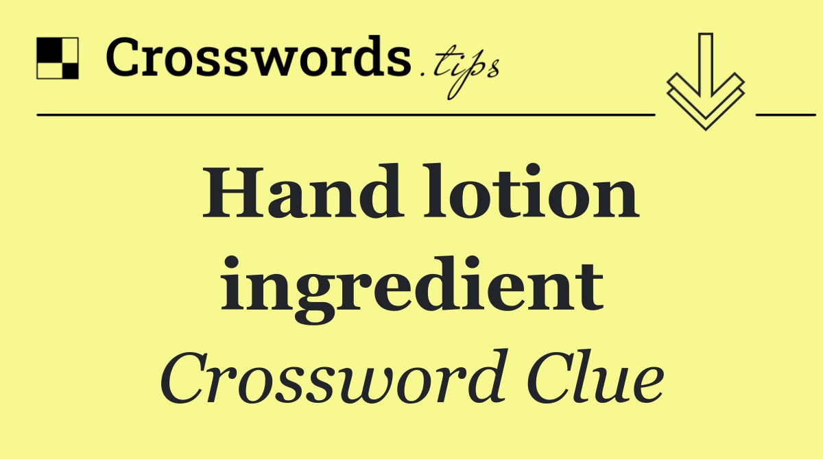 Looking for the answer to Hand lotion ingredient from the USA Today puzzle? We have found the exact 4-letter solution you need. Want a challenge? Use our progressive letter reveal tool, explore helpful hints like anagrams and alternative clues, or browse other clues from today's puzzle. Ready to solve it?