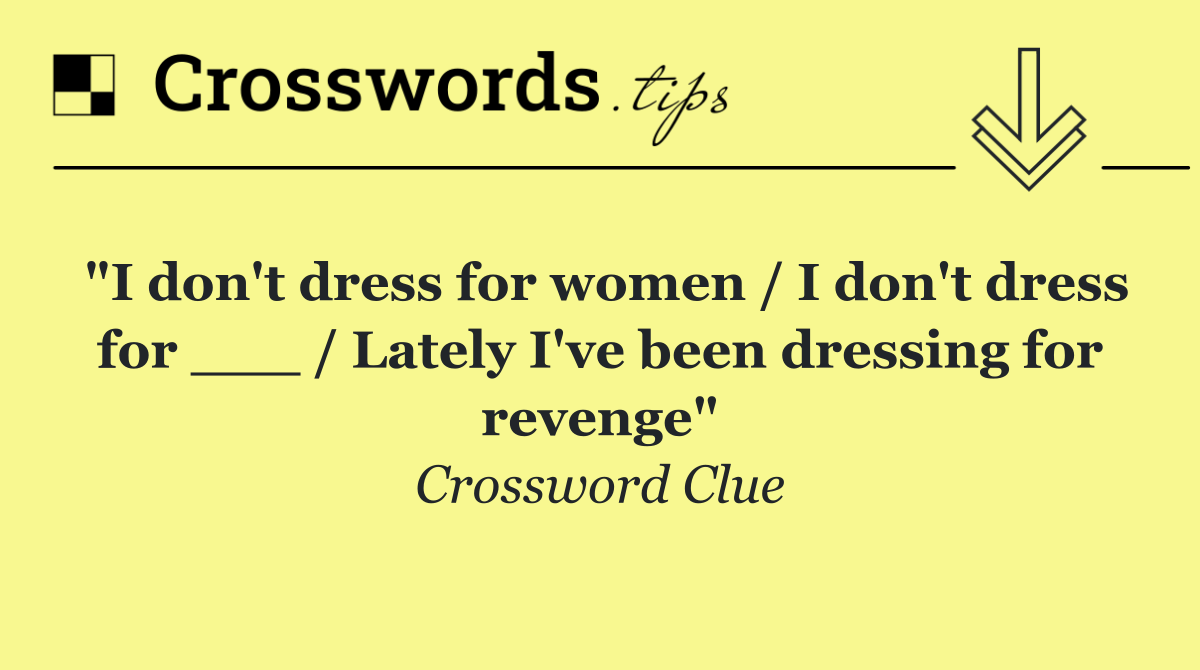 We specialize in solving many of your favorite puzzles, including the New York Times, USA Today, LA Times, Daily Themed Crosswords, and more. The ""I don't dress for women / I don't dress for ___ / Lately I've been dressing for revenge"" clue from the USA Today puzzle, June 22 edition, is one such example.