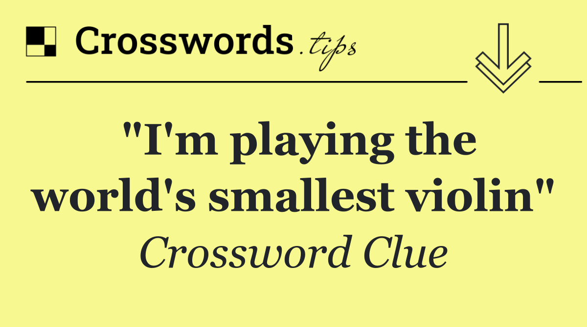 Looking for the answer to "I'm playing the world's smallest violin" from the USA Today puzzle? We have found the exact 11-letter solution you need. Want a challenge? Use our progressive letter reveal tool, explore helpful hints like anagrams and alternative clues, or browse other clues from today's puzzle. Ready to solve it?