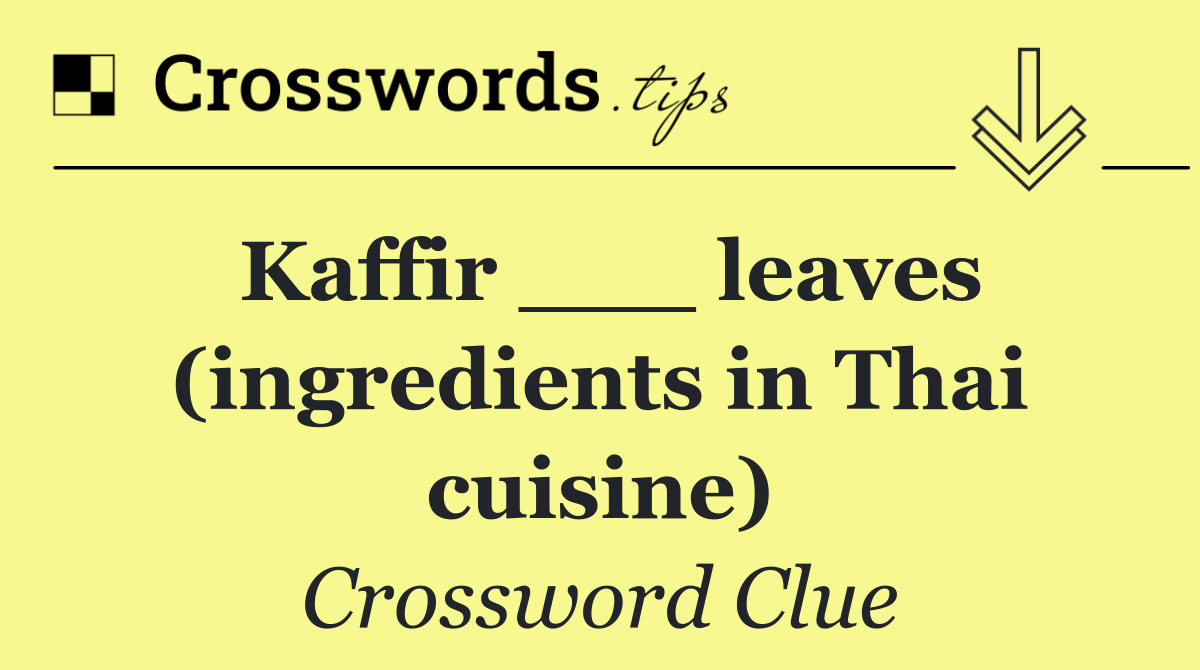 Looking for the answer to Kaffir ___ leaves (ingredients in Thai cuisine) from the USA Today puzzle? We have found the exact 4-letter solution you need. Want a challenge? Use our progressive letter reveal tool, explore helpful hints like anagrams and alternative clues, or browse other clues from today's puzzle. Ready to solve it?
