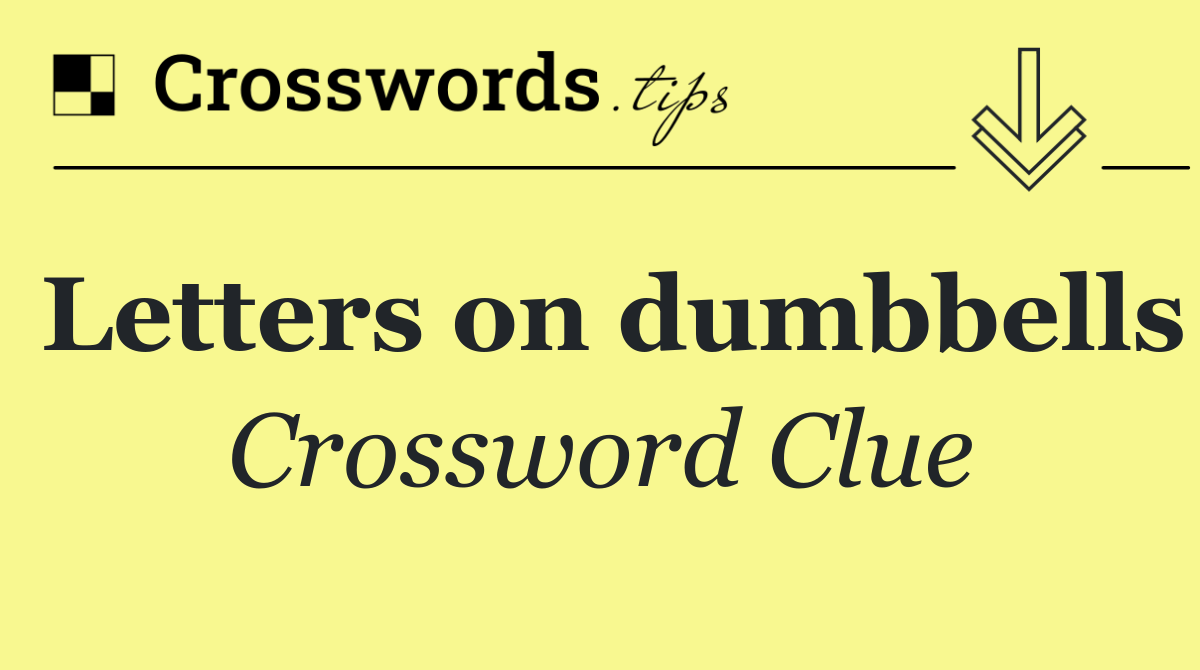 Looking for the answer to Letters on dumbbells from the USA Today puzzle? We have found the exact 3-letter solution you need. Want a challenge? Use our progressive letter reveal tool, explore helpful hints like anagrams and alternative clues, or browse other clues from today's puzzle. Ready to solve it?