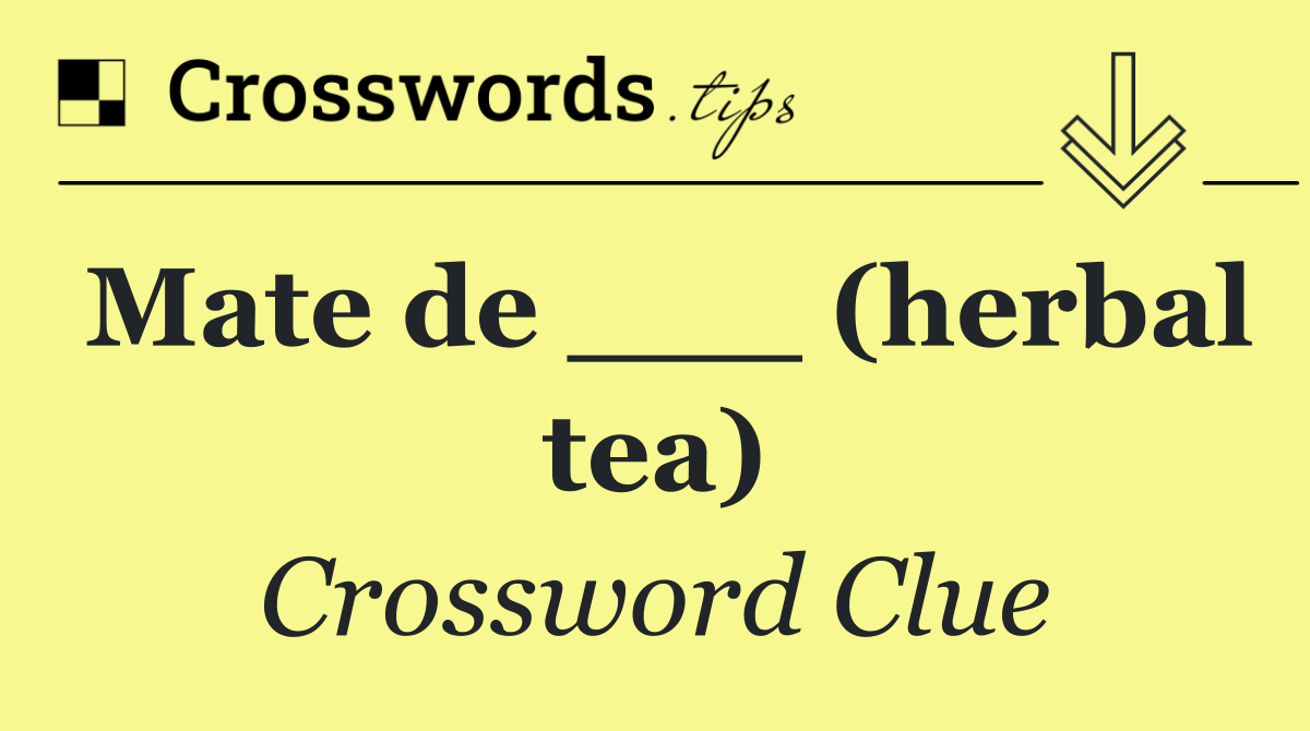 Looking for the answer to Mate de ___ (herbal tea) from the USA Today puzzle? We have found the exact 4-letter solution you need. Want a challenge? Use our progressive letter reveal tool, explore helpful hints like anagrams and alternative clues, or browse other clues from today's puzzle. Ready to solve it?