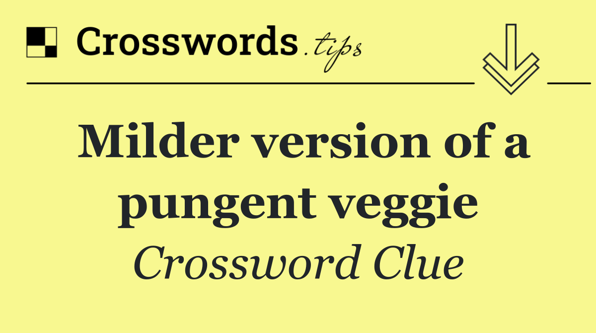 We specialize in solving many of your favorite puzzles, including the New York Times, USA Today, LA Times, Daily Themed Crosswords, and more. The "Milder version of a pungent veggie" clue from the USA Today puzzle, June 19 edition, is one such example.