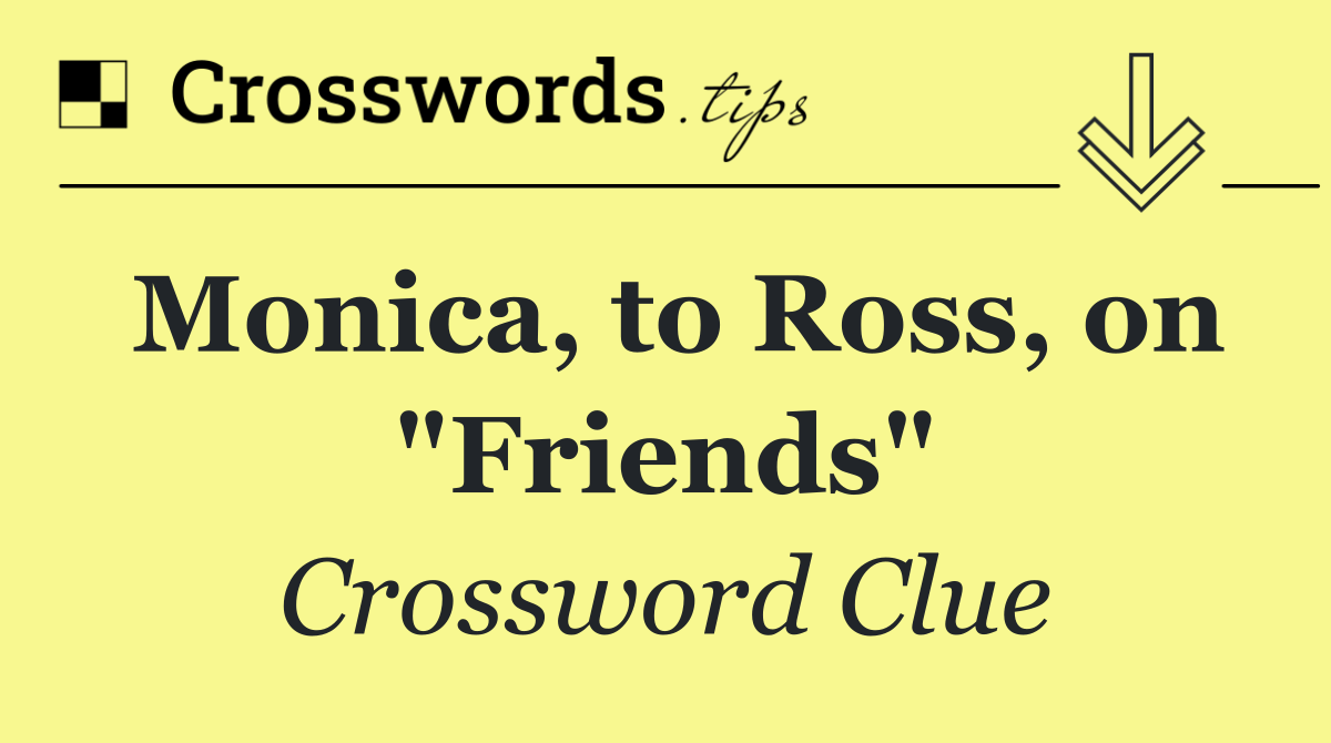 We specialize in solving many of your favorite puzzles, including the New York Times, USA Today, LA Times, Daily Themed Crosswords, and more. The "Monica, to Ross, on "Friends"" clue from the USA Today puzzle, December 08 edition, is one such example.