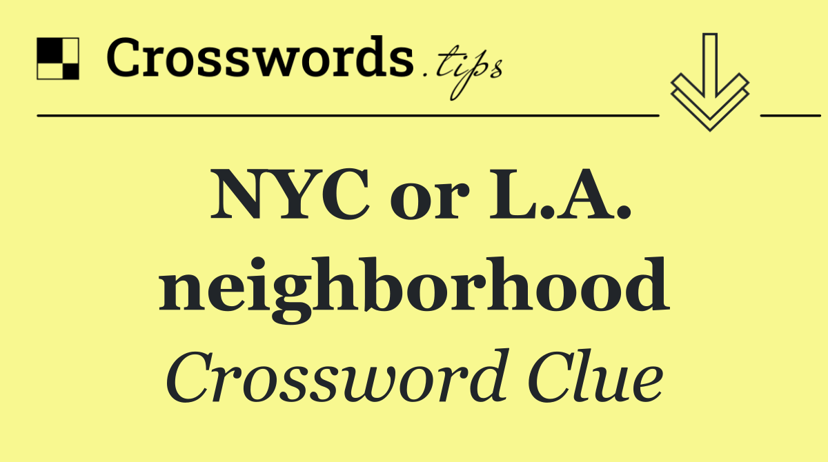 Looking for the answer to NYC or L.A. neighborhood from the USA Today puzzle? We have found the exact 4-letter solution you need. Want a challenge? Use our progressive letter reveal tool, explore helpful hints like anagrams and alternative clues, or browse other clues from today's puzzle. Ready to solve it?