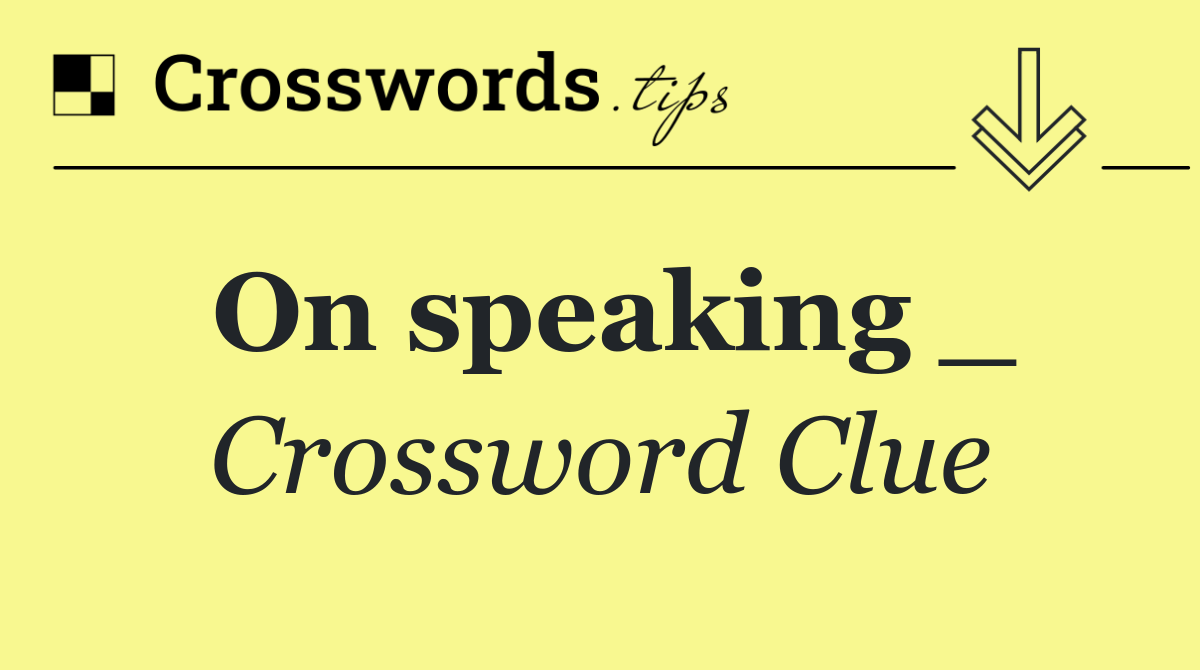 Looking for the answer to On speaking _ from the USA Today puzzle? We have found the exact 5-letter solution you need. Want a challenge? Use our progressive letter reveal tool, explore helpful hints like anagrams and alternative clues, or browse other clues from today's puzzle. Ready to solve it?