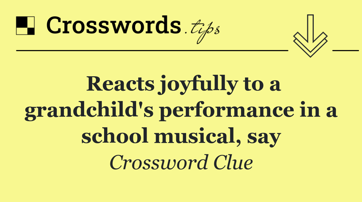 We specialize in solving many of your favorite puzzles, including the New York Times, USA Today, LA Times, Daily Themed Crosswords, and more. The "Reacts joyfully to a grandchild's performance in a school musical, say" clue from the USA Today puzzle, June 26 edition, is one such example.