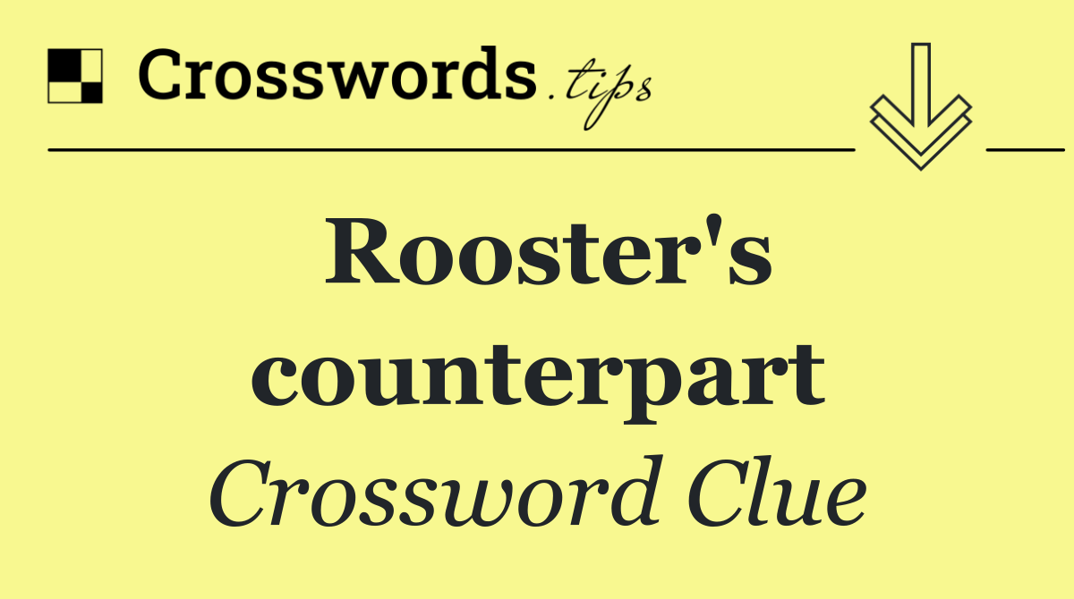Looking for the answer to Rooster's counterpart from the USA Today puzzle? We have found the exact 3-letter solution you need. Want a challenge? Use our progressive letter reveal tool, explore helpful hints like anagrams and alternative clues, or browse other clues from today's puzzle. Ready to solve it?