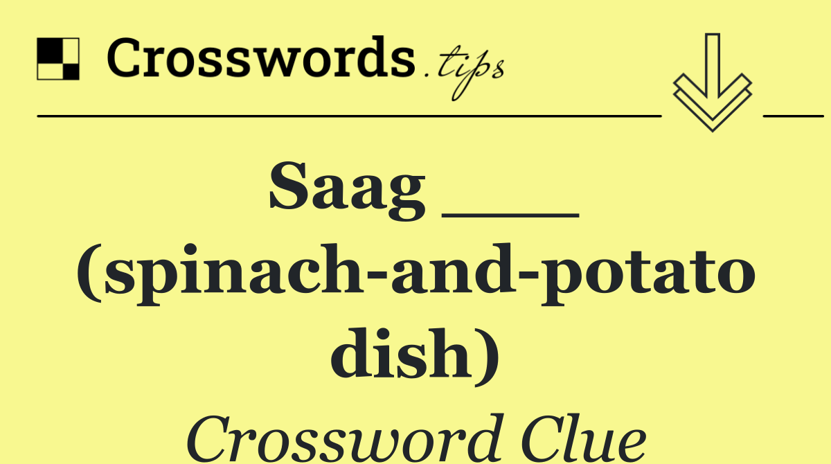 Looking for the answer to Saag ___ (spinach and potato dish) from the USA Today puzzle? We have found the exact 4-letter solution you need. Want a challenge? Use our progressive letter reveal tool, explore helpful hints like anagrams and alternative clues, or browse other clues from today's puzzle. Ready to solve it?