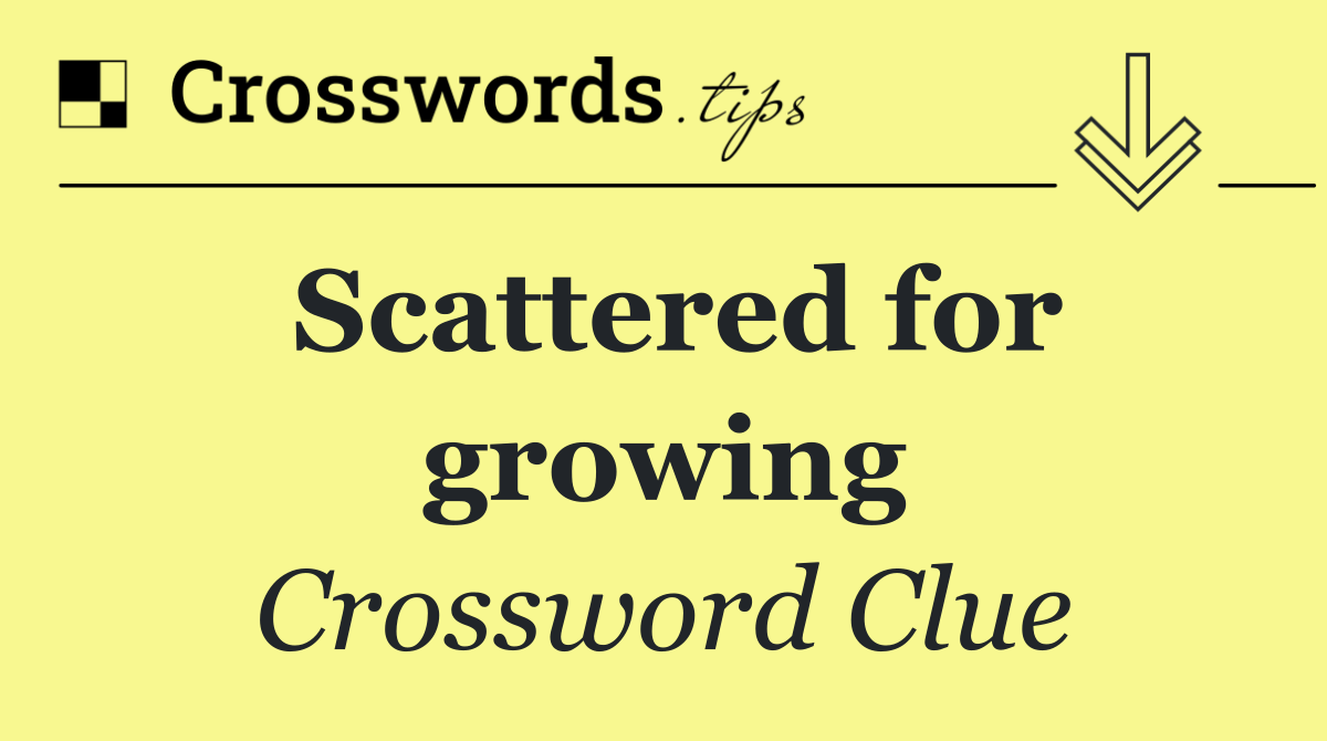 Looking for the answer to Scattered for growing from the USA Today puzzle? We have found the exact 4-letter solution you need. Want a challenge? Use our progressive letter reveal tool, explore helpful hints like anagrams and alternative clues, or browse other clues from today's puzzle. Ready to solve it?
