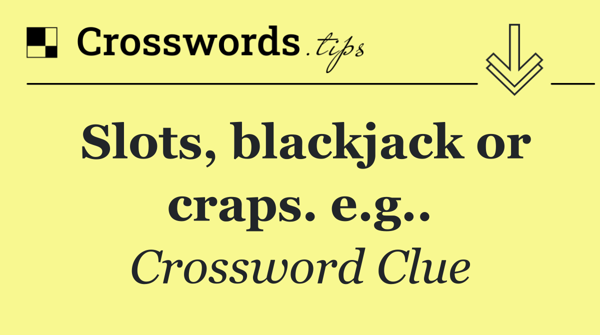 Looking for the answer to Slots, blackjack or craps. e.g.. from the USA Today puzzle? We have found the exact 10-letter solution you need. Want a challenge? Use our progressive letter reveal tool, explore helpful hints like anagrams and alternative clues, or browse other clues from today's puzzle. Ready to solve it?