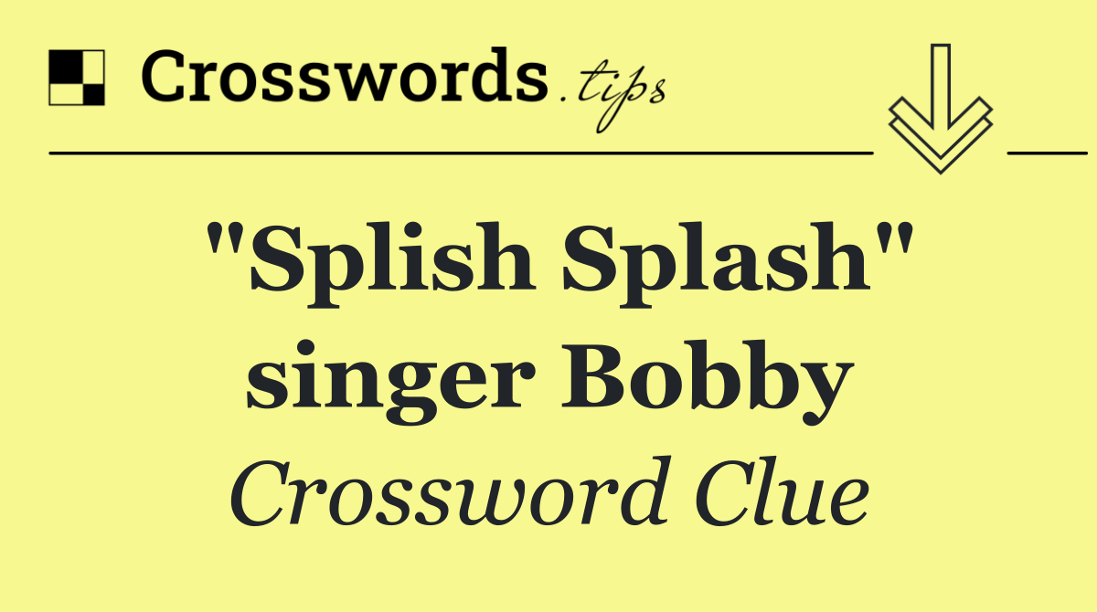 We specialize in solving many of your favorite puzzles, including the New York Times, USA Today, LA Times, Daily Themed Crosswords, and more. The ""Splish Splash" singer Bobby" clue from the USA Today puzzle, June 15 edition, is one such example.