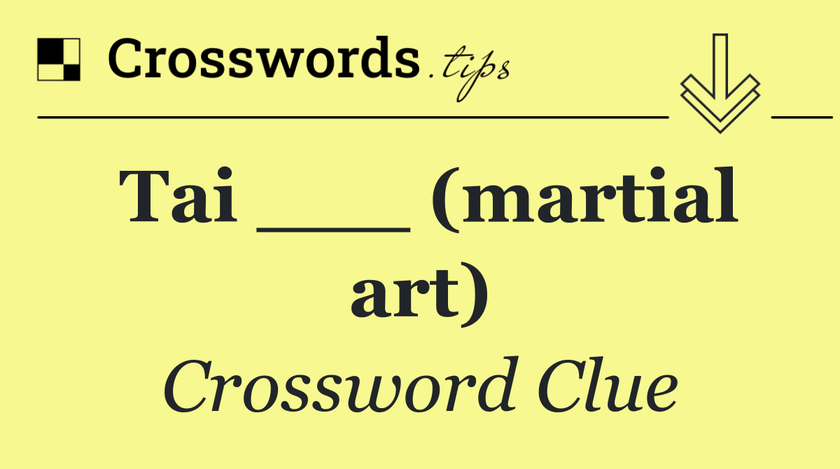 Looking for the answer to Tai ___ (martial art) from the USA Today puzzle? We have found the exact 3-letter solution you need. Want a challenge? Use our progressive letter reveal tool, explore helpful hints like anagrams and alternative clues, or browse other clues from today's puzzle. Ready to solve it?