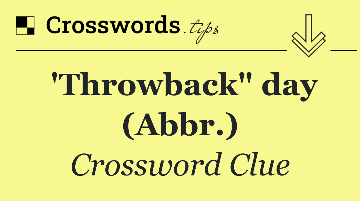 Looking for the answer to 'Throwback" day (Abbr.) from the USA Today puzzle? We have found the exact 3-letter solution you need. Want a challenge? Use our progressive letter reveal tool, explore helpful hints like anagrams and alternative clues, or browse other clues from today's puzzle. Ready to solve it?