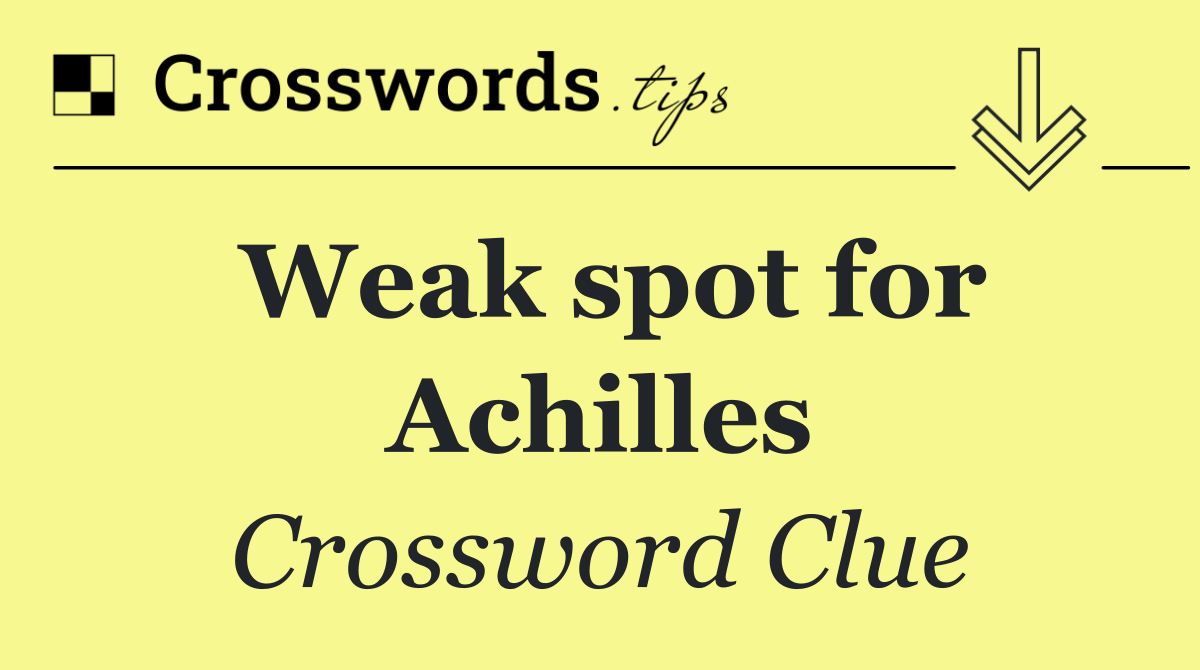 We specialize in solving many of your favorite puzzles, including the New York Times, USA Today, LA Times, Daily Themed Crosswords, and more. The "Weak spot for Achilles" clue from the USA Today puzzle, July 16 edition, is one such example.