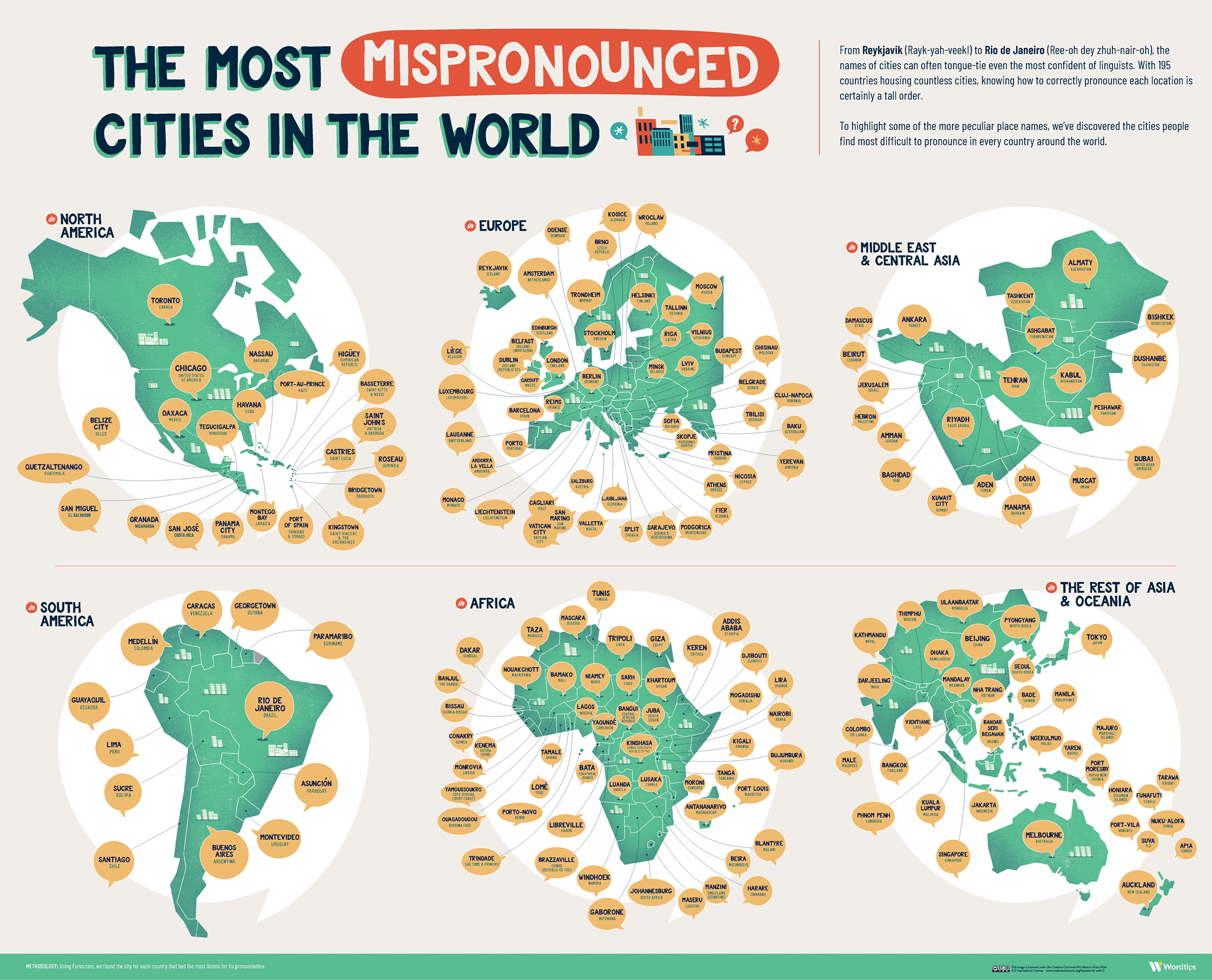 With 195 countries speaking over 7000 languages and dialects, there’s bound to be some bemusement when it comes to nailing the correct pronunciation. With some of the most contested and confusing pronunciations resulting from city names.
