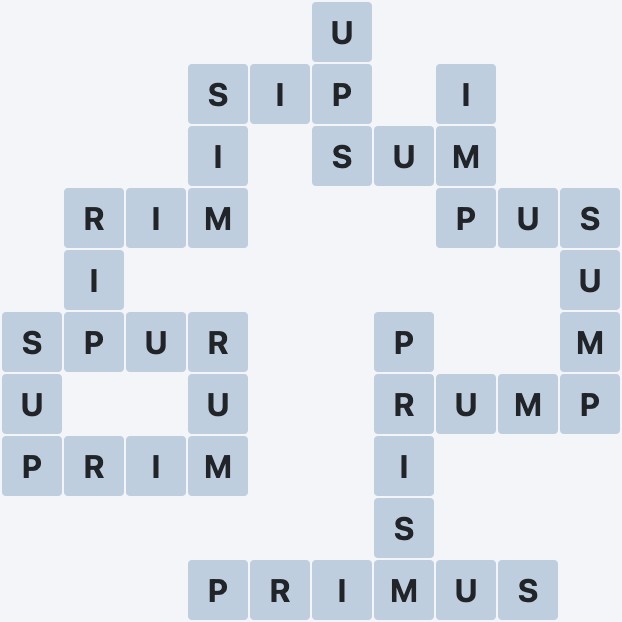 Wordscapes Level 1287 from the Wood Pack in the Fog Group features the letters IMPRSU. These letters can be combined to form 16 words: IMP, PRIM, PRIMUS, PRISM, PUS, RIM, RIP, RUM, RUMP, SIM, SIP, SPUR, SUM, SUMP, SUP and UPS. In addition to these words, there are 9 exciting bonus words to uncover. This makes Level 1287 both challenging and entertaining for all Wordscapes players.