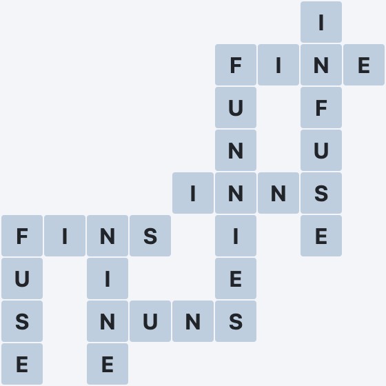 Wordscapes Level 1297 from the Valley Pack in the Fog Group features the letters EFINSU. These letters can be combined to form 8 words: FINE, FINS, FUNNIES, FUSE, INFUSE, INNS, NINE and NUNS. In addition to these words, there are 6 exciting bonus words to uncover. This makes Level 1297 both challenging and entertaining for all Wordscapes players.