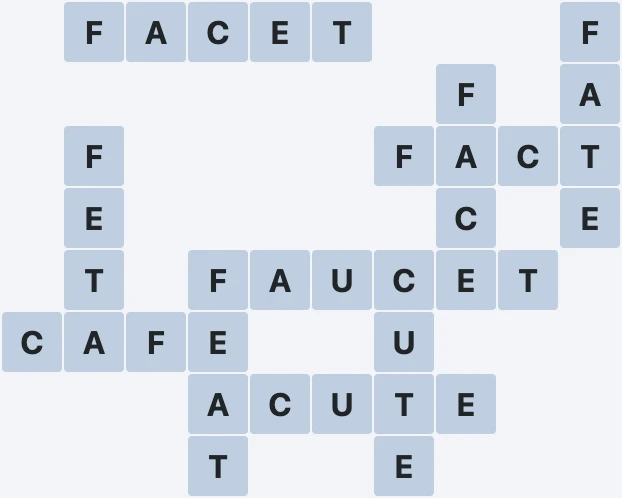 Wordscapes Level 1447 from the Ray Pack in the Woodland Group features the letters ACEFTU. These letters can be combined to form 10 words: ACUTE, CAFE, CUTE, FACE, FACET, FACT, FATE, FAUCET, FEAT and FETA. In addition to these words, there is 1 exciting bonus word to uncover. This makes Level 1447 both challenging and entertaining for all Wordscapes players.
