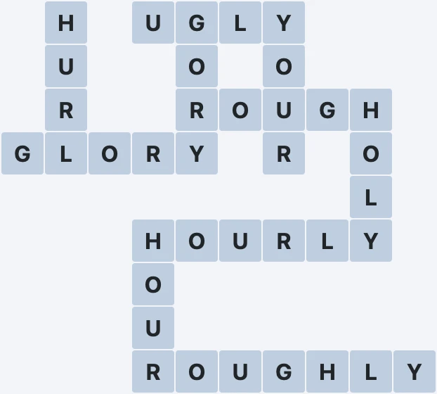 Wordscapes Level 1516 from the Leaf Pack in the Woodland Group features the letters GHLORUY. These letters can be combined to form 10 words: GLORY, GORY, HOLY, HOUR, HOURLY, HURL, ROUGH, ROUGHLY, UGLY and YOUR. In addition to these words, there are 6 exciting bonus words to uncover. This makes Level 1516 both challenging and entertaining for all Wordscapes players.