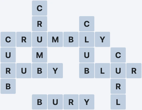 Wordscapes Level 1526 from the Flat Pack in the Outback Group features the letters BCLMRUY. These letters can be combined to form 8 words: BLUR, BURY, CLUB, CRUMB, CRUMBLY, CURB, CURL and RUBY. In addition to these words, there are 5 exciting bonus words to uncover. This makes Level 1526 both challenging and entertaining for all Wordscapes players.