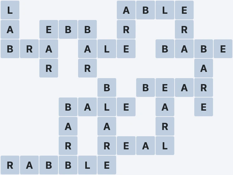 Wordscapes Level 1527 from the Flat Pack in the Outback Group features the letters ABELR. These letters can be combined to form 18 words: ABLE, ALE, ARE, BABE, BALE, BAR, BARB, BARE, BEAR, BLARE, BRA, EAR, EARL, EBB, ERA, LAB, RABBLE and REAL. In addition to these words, there are 5 exciting bonus words to uncover. This makes Level 1527 both challenging and entertaining for all Wordscapes players.