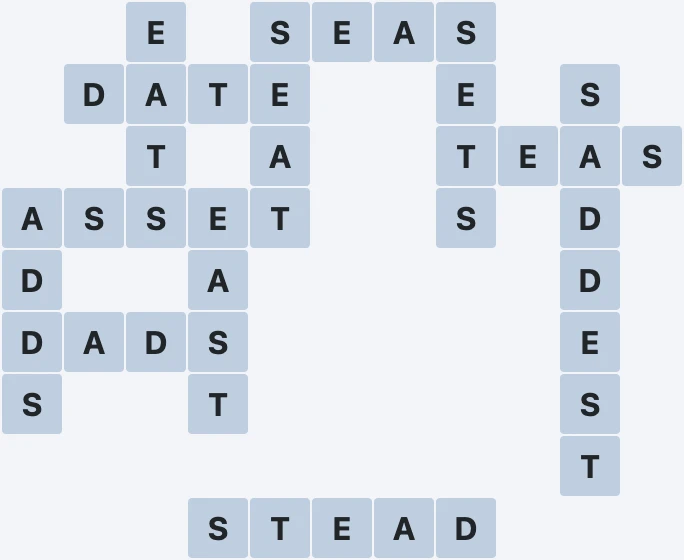 Wordscapes Level 1612 from the White Pack in the Frost Group features the letters ADEST. These letters can be combined to form 12 words: ADDS, ASSET, DADS, DATE, EAST, EATS, SADDEST, SEAS, SEAT, SETS, STEAD and TEAS. In addition to these words, there are 8 exciting bonus words to uncover. This makes Level 1612 both challenging and entertaining for all Wordscapes players.