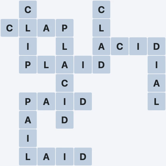 Wordscapes Level 2067 from the Pebble Pack in the Coast Group features the letters ACDILP. These letters can be combined to form 10 words: ACID, CLAD, CLAP, CLIP, DIAL, LAID, PAID, PAIL, PLACID and PLAID. In addition to these words, there is 1 exciting bonus word to uncover. This makes Level 2067 both challenging and entertaining for all Wordscapes players.