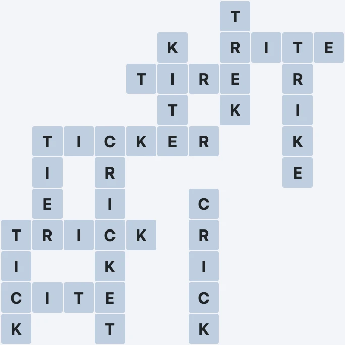 Wordscapes Level 2106 from the Bright Pack in the Twilight Group features the letters CEIKRT. These letters can be combined to form 12 words: CITE, CRICK, CRICKET, KITE, RITE, TICK, TICKER, TIER, TIRE, TREK, TRICK and TRIKE. In addition to these words, there are 4 exciting bonus words to uncover. This makes Level 2106 both challenging and entertaining for all Wordscapes players.