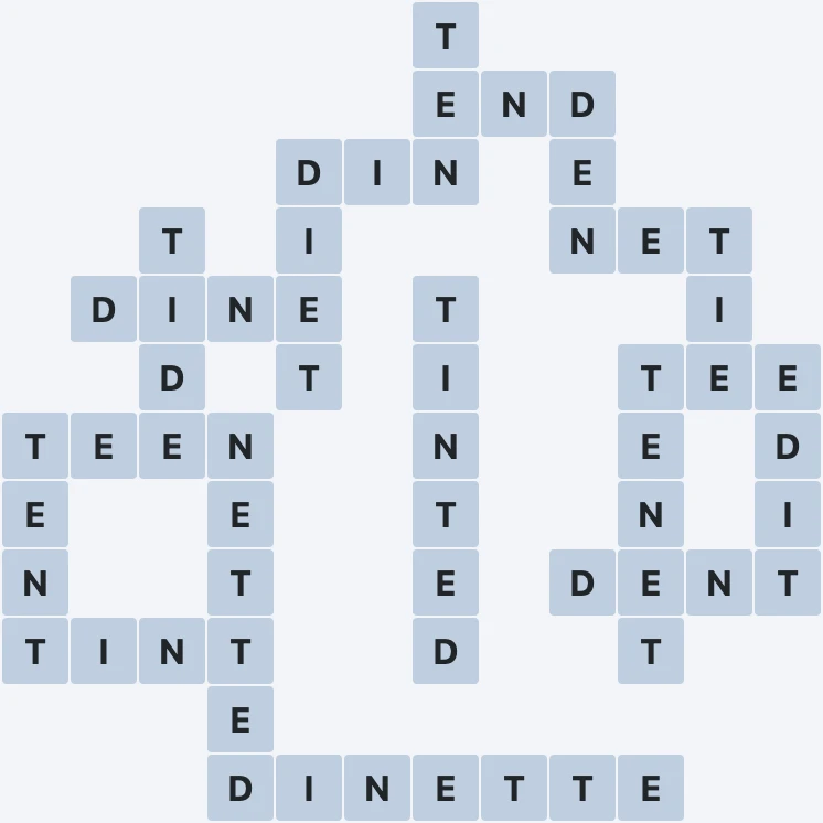 Wordscapes Level 2240 from the Cover Pack in the Marsh Group features the letters DEINT. These letters can be combined to form 19 words: DEN, DENT, DIET, DIN, DINE, DINETTE, EDIT, END, NET, NETTED, TEE, TEEN, TEN, TENET, TENT, TIDE, TIE, TINT and TINTED. In addition to these words, there are 13 exciting bonus words to uncover. This makes Level 2240 both challenging and entertaining for all Wordscapes players.