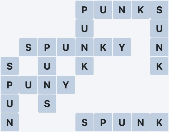 Wordscapes Level 306 from the Coast Pack in the Tropic Group features the letters KNPSUY. These letters can be combined to form 8 words: PUNK, PUNKS, PUNS, PUNY, SPUN, SPUNK, SPUNKY and SUNK. In addition to these words, there are 2 exciting bonus words to uncover. This makes Level 306 both challenging and entertaining for all Wordscapes players.