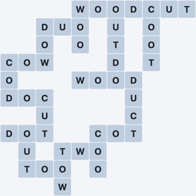 Wordscapes Level 3133 from the Field Pack in the Rows Group features the letters CDOTUW. These letters can be combined to form 19 words: COD, COO, COOT, COT, COW, CUT, DOC, DOT, DOW, DUCT, DUO, OUT, OUTDO, TOO, TOW, TWO, WOO, WOOD and WOODCUT. In addition to these words, there is 1 exciting bonus word to uncover. This makes Level 3133 both challenging and entertaining for all Wordscapes players.