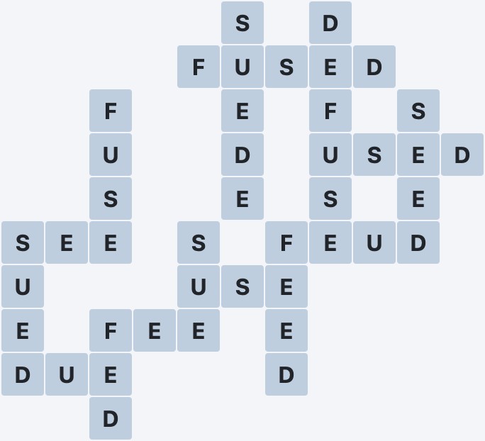 Wordscapes Level 349 from the Fjord Pack in the Mountain Group features the letters DEFSU. These letters can be combined to form 15 words: DEFUSE, DUE, FED, FEE, FEED, FEUD, FUSE, FUSED, SEE, SEED, SUE, SUED, SUEDE, USE and USED. In addition to these words, there are 6 exciting bonus words to uncover. This makes Level 349 both challenging and entertaining for all Wordscapes players.