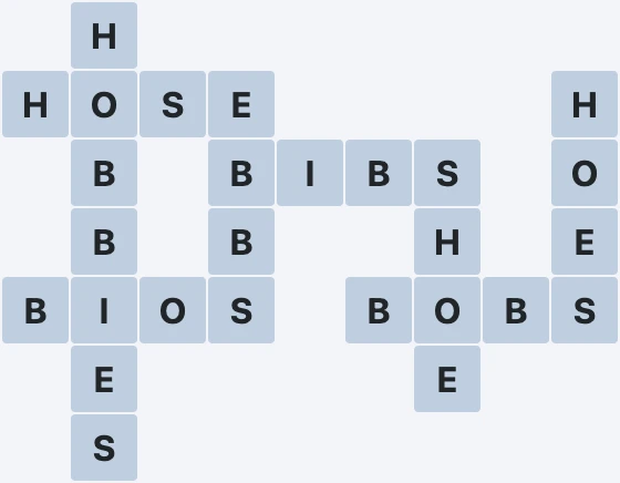 Wordscapes Level 5443 from the Soar Pack in the Meadow Group features the letters BEHIOS. These letters can be combined to form 8 words: BIBS, BIOS, BOBS, EBBS, HOBBIES, HOES, HOSE and SHOE. This makes Level 5443 both challenging and entertaining for all Wordscapes players.