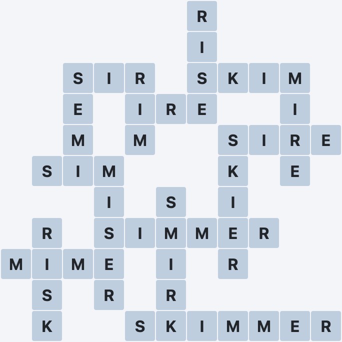 Wordscapes Level 896 from the Sail Pack in the Field Group features the letters EIKMRS. These letters can be combined to form 16 words: IRE, MIME, MIRE, MISER, RIM, RISE, RISK, SEMI, SIM, SIMMER, SIR, SIRE, SKIER, SKIM, SKIMMER and SMIRK. In addition to these words, there are 15 exciting bonus words to uncover. This makes Level 896 both challenging and entertaining for all Wordscapes players.