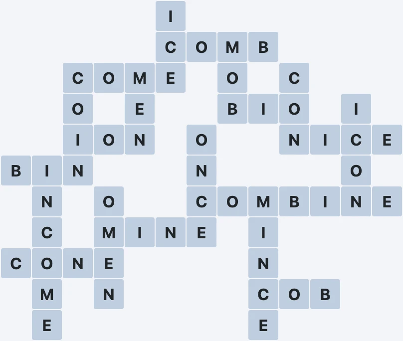 Wordscapes Level 953 from the Amber Pack in the Field Group features the letters BCEIMNO. These letters can be combined to form 20 words: BIN, BIO, COB, COIN, COMB, COMBINE, COME, CON, CONE, ICE, ICON, INCOME, ION, MEN, MINCE, MINE, MOB, NICE, OMEN and ONCE. In addition to these words, there are 11 exciting bonus words to uncover. This makes Level 953 both challenging and entertaining for all Wordscapes players.